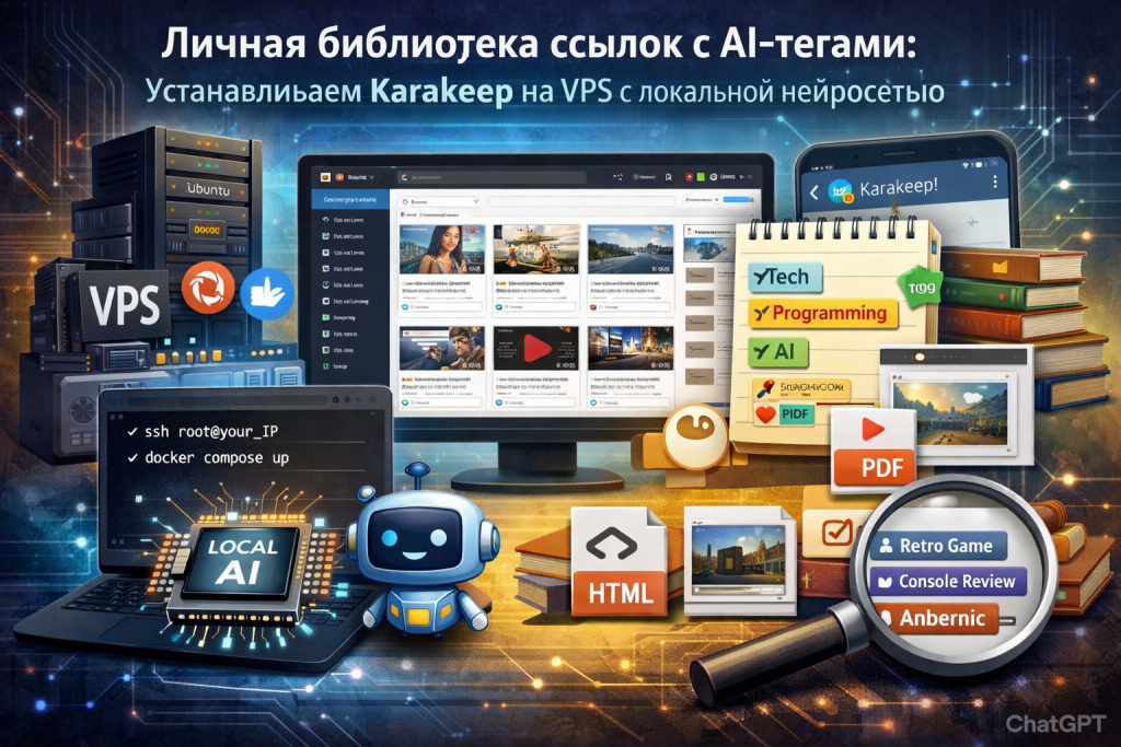 На сервере с 4 GB RAM система работает стабильно, хотя AI думает небыстро (1-2 минуты на первую ссылку, потом быстрее). Для домашнего использования — идеально.