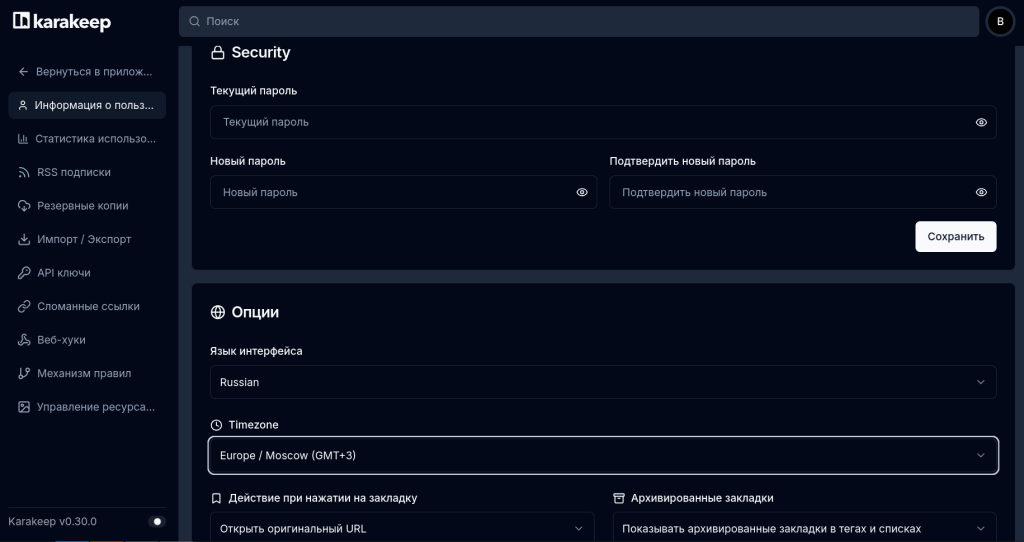 - Karakeep — веб-интерфейс для хранения ссылок