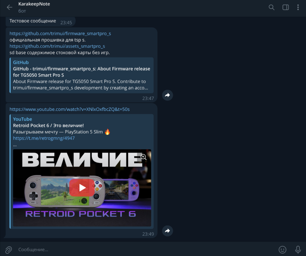 Представьте: вы скидываете в Telegram ссылку на интересную статью, видео с YouTube или пост с форума, а система автоматически:
