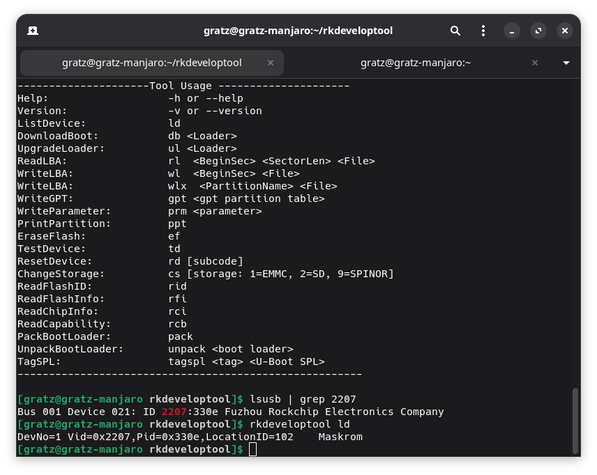 • Запускайте rkdeveloptool с sudo.