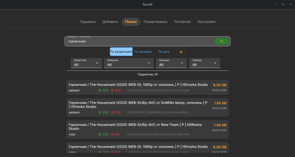 Готово! TorrServer запущен и работает в фоне. Теперь можно искать фильмы и смотреть их через стриминг.