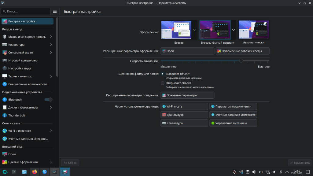 KDE в CachyOS настроен уже «из коробки» — ничего допиливать не пришлось.
