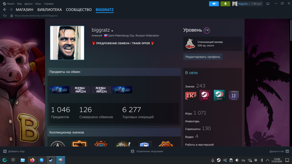 Steam устанавливается стандартно через репозиторий. Proton работает корректно, игры запускаются без дополнительных танцев с бубном.